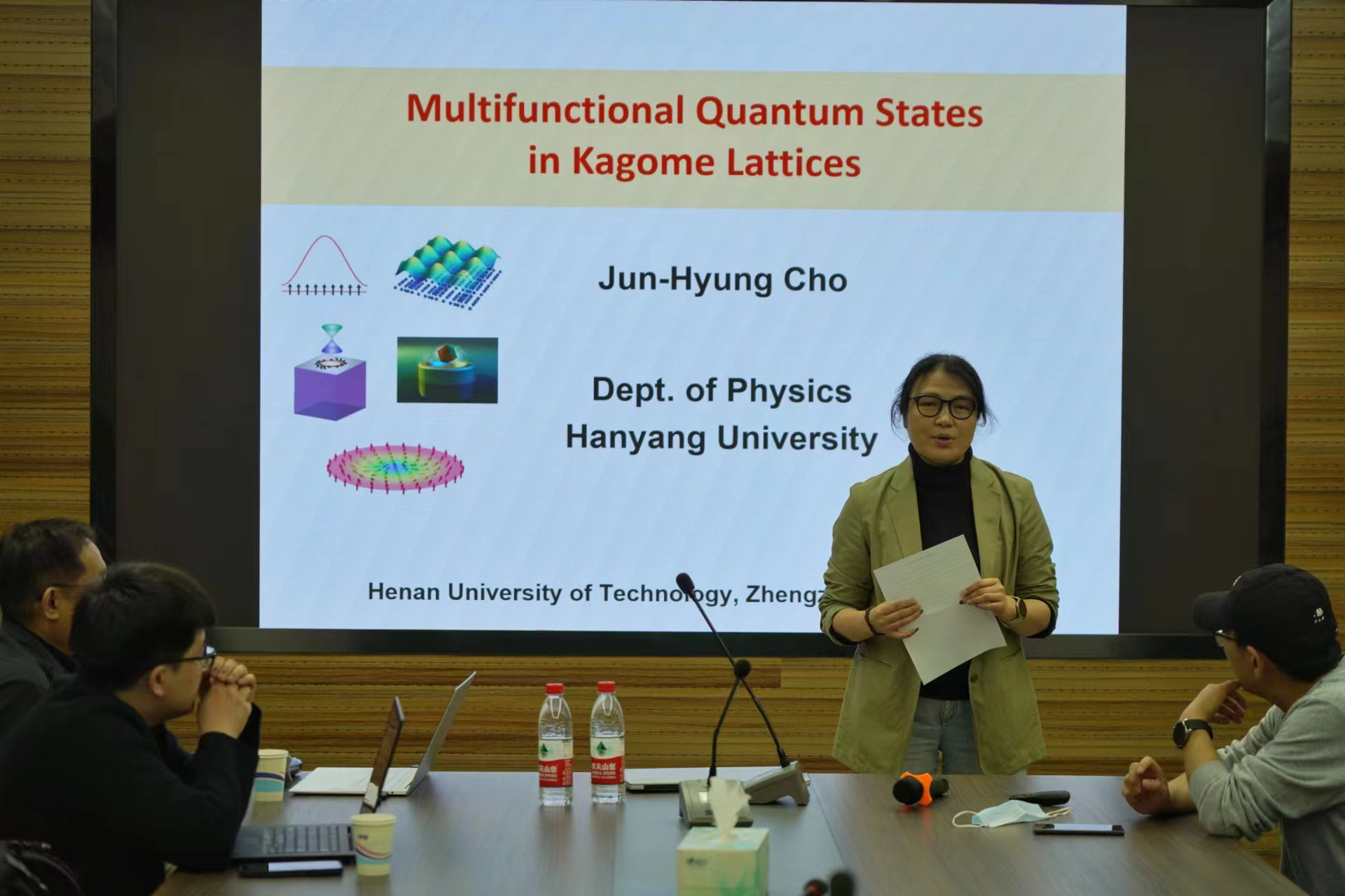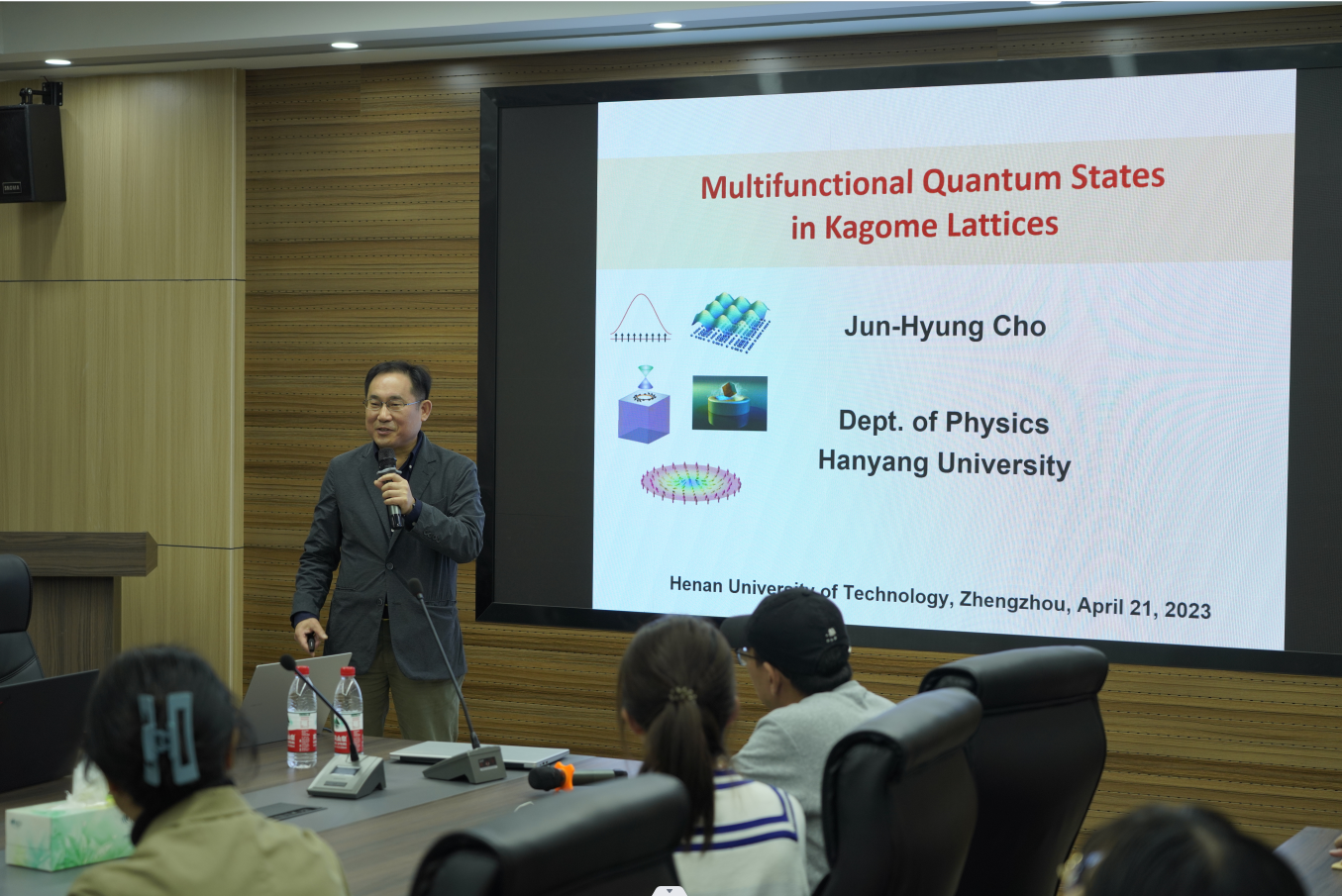 2023421日,应足球下注网站 邀请,韩国汉阳大学物理系赵俊衡(Jun-Hyung Cho)教授莅临我校进行学术交流,并做了题为“Multifunctional Quantum States in Kagome Lattices”的学术报告,本次学术报告会由富笑男院长主持,物理系相关教师、研究生和创新实验班学员参加了会议。富笑男院长代表下注足球 全体师生对赵俊衡教授的到来表示了热烈的欢迎,并向参会师生简单介绍赵俊衡教授的学术经历和研究领域