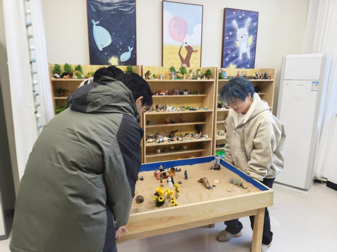 以劳润心,让成长更有温度,周老师结合空间功能需求,提出“安全、舒适、治愈”的布置原则。参与者分组协作,从筛选心理书籍、分类摆放绘本,到亲手栽种绿萝、多肉等绿植,再到绘制心理健康主题手账、悬挂温暖标语,每一项劳动都凝聚着创意与用心。过程中,大家相互配合测量尺寸、搭配色彩,在分工协作中体会沟通的重要性;在擦拭桌椅、整理角落的细节里,感受“付出就有收获”的成就感;在打造专属心理放松区时,主动分享自己心中“治愈空间”的模样,潜移默化中释放压力、增进共鸣。