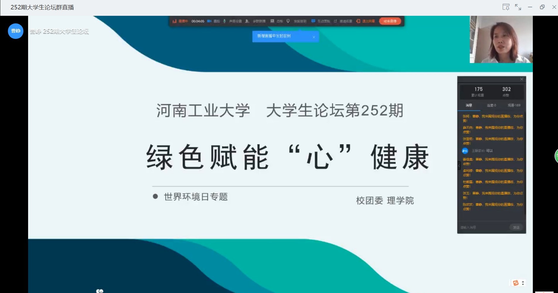 承办的主题为“绿色赋能‘心’健康”的世界环境日专题讲座,第252期大学生论坛在钉钉直播平台成功举办。活动旨在推进我校绿色学校建设进程,进一步丰富绿色学校文化内涵,强化大学生心理健康教育,帮助大学生营造健康的心理生态系统。此次论坛邀请我校全国百佳心理委员李周晋达、徐慧雅、李梦瑶进行汇报。校团委副书记鲍庆丹、社团部部长李凯歌,足球下注网站
