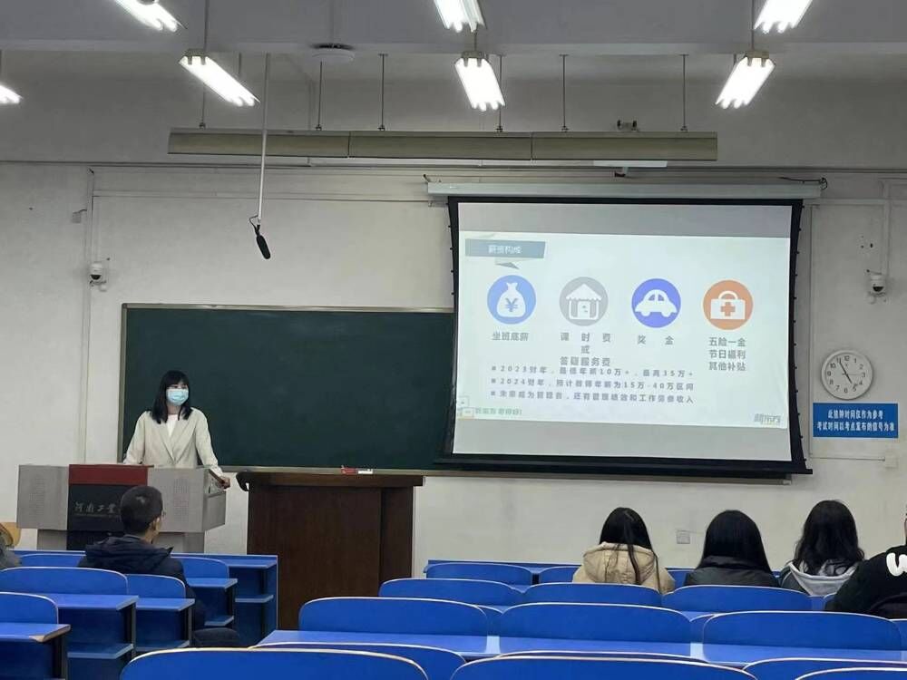 与新东方河南省域在4号楼107教室联合举办了专场招聘会,此次招聘会主要面向2024届毕业生。招聘会由新东方河南省域人力招聘经理权利、新东方河南省域校招负责人成昕宇、新东方河南省域师训负责人张娅杰宣讲,足球下注网站