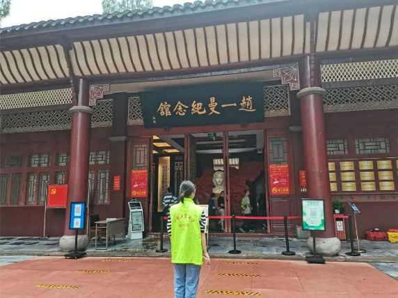 7月9日,我们来到翠屏山,前去参观抗日名将女英雄赵一曼的纪念馆。在赵一曼烈士石雕前,我们默哀,瞻仰先烈。当天下着小雨,氛围庄严肃穆,注视着屹立于眼前的赵一曼雕塑,心情愈发沉重悲痛。