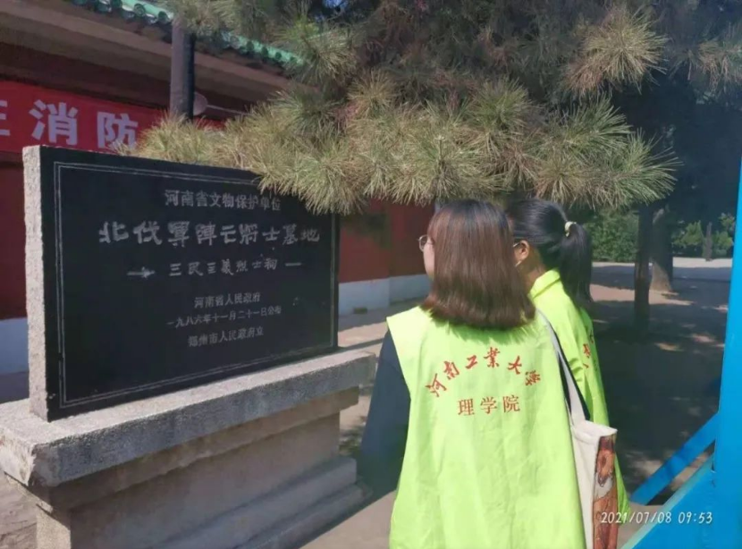 2021正值建党100周年,在中国共产党奋进的百年岁月里,有无数可歌可泣的英雄人物为革命献出了自己的青春和生命,那段充满硝烟的历史,逐渐形成了中国的红色文化。本次社会实践,我们不忘初心忆党史队将以新时代青年的视角去追忆红色记忆,去记录那一段荡气回肠的历史,在此次活动中我们走访了郑州市碧沙岗公园,二七纪念塔以及郑州烈士陵园。